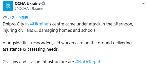 ウクライナの中央のドニプロ市は、午後の攻撃のもとにあった