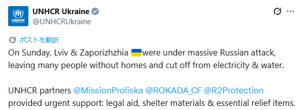 日曜日に、リビウやザポーリージャは、ロシアの激しい攻撃のもとにあり、
