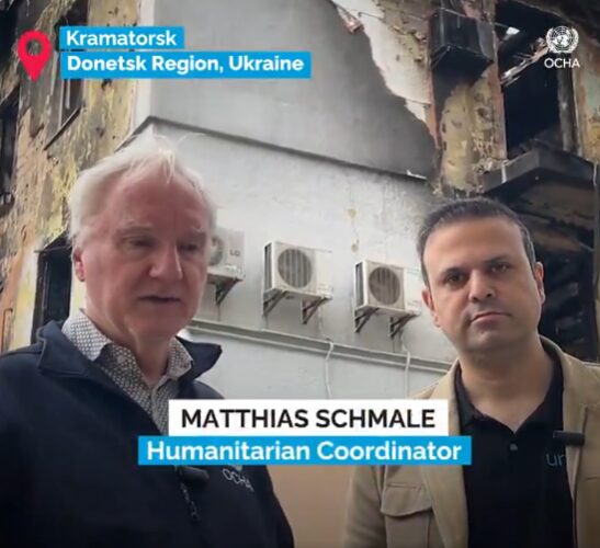 ドネツク州クラマトルスクでは、人道支援コーディネーターやユニセフウクライナの代表が、最前線のコミュニティのために、必要不可欠なサービスをサポートするため、地方パートナーと参加した