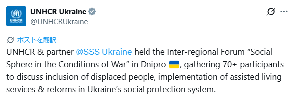 UNHCRや、パートナーSSSウクライナは、地域間フォーラム「戦争状態の社会的分野」をウクライナドニプロ市で開いた