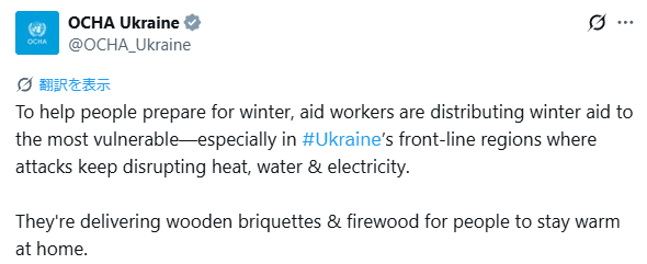 2025年10月29日のOCHAウクライナのポストです
