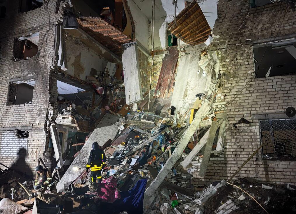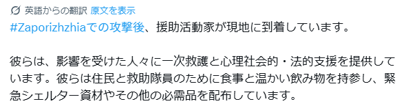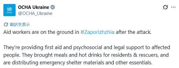 援助従事者は、攻撃後のザポリージャの現場にいる