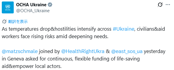2025年11月1日のOCHAウクライナのポストです