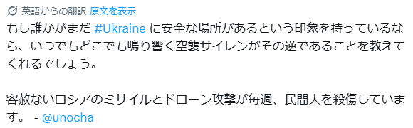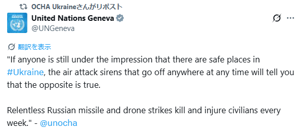 2025年11月22日にOCHAウクライナがリポストした、国連ジュネーブのポストです