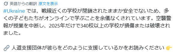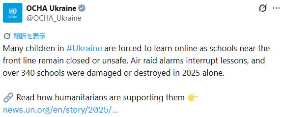 空襲警報が、授業を中断し、2025年だけで、340以上の学校が被害を受け、破壊された