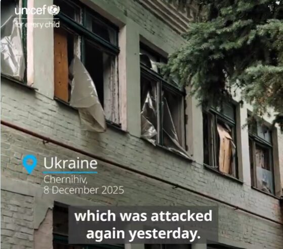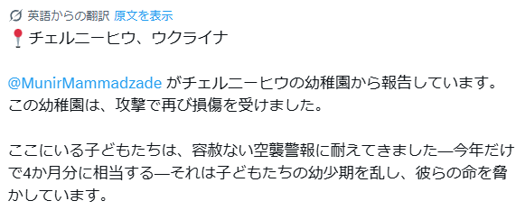 ムニル・ママザデさんは、攻撃によって再び被害を受けた、チェルニーヒウの幼稚園から、レポートしています