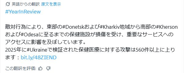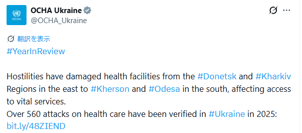健康医療への560以上の攻撃は2025年のウクライナで確認されている