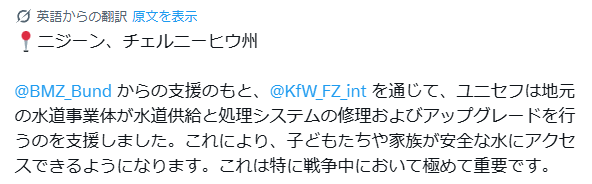 この支援は、子供たちや家族が、特に戦争中必要となる、安全な水にアクセスすることを可能にしている