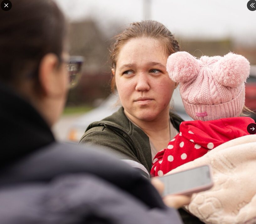 子供を連れて最前線のコミュニティから避難しないといけなかったアリオナの家族