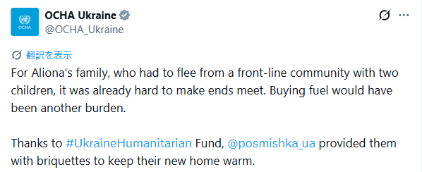 ウクライナ人道支援基金のおかげで、