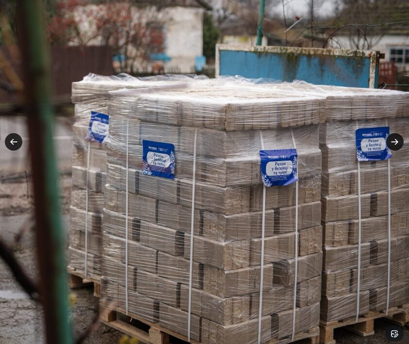 ポシュミシュカウクライナは、彼らに自分たちの家の暖を保てるブリケット(豆炭)を提供した