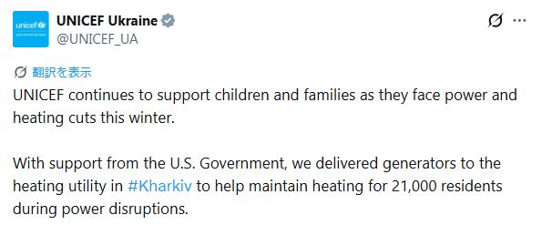 2026年2月21日のユニセフウクライナのポストです