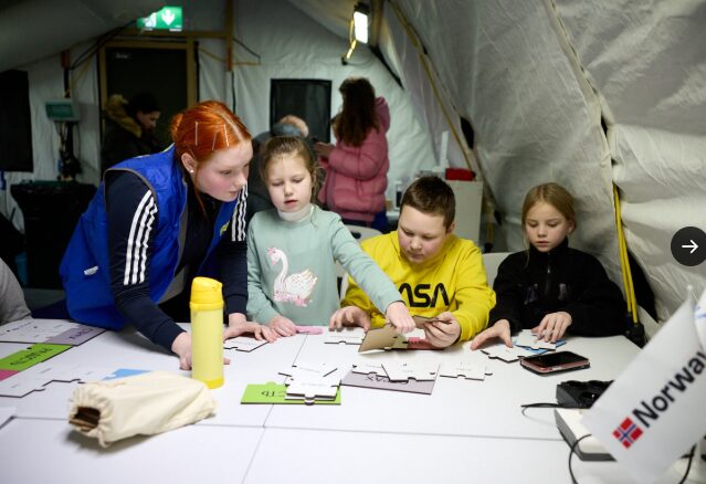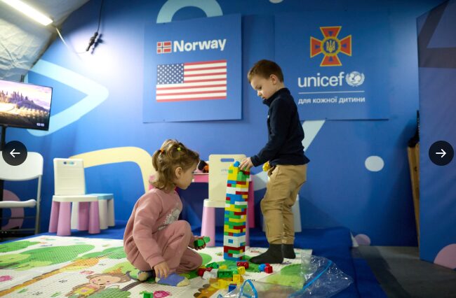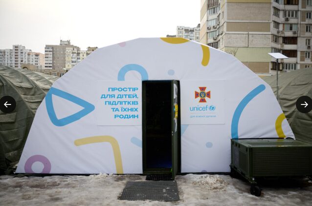EU、ノルウエー、米国の援助によって、ユニセフは、ウクライナ国家緊急サービスとともに、子供たちに用品やこれらのポイント、子供たちの楽しい空間、心理社会的、ピッタリのサポートを、提供した