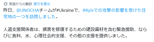 昨日、ウクライナの国連OCHAチームは、キウイの攻撃によって被害を受けた住民が住むエリアの一つに訪れた