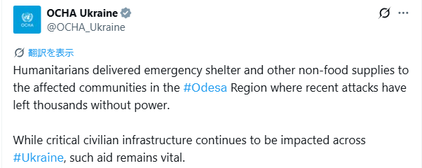 2025年11月15日のOCHAウクライナのポストです